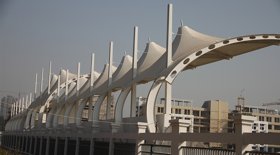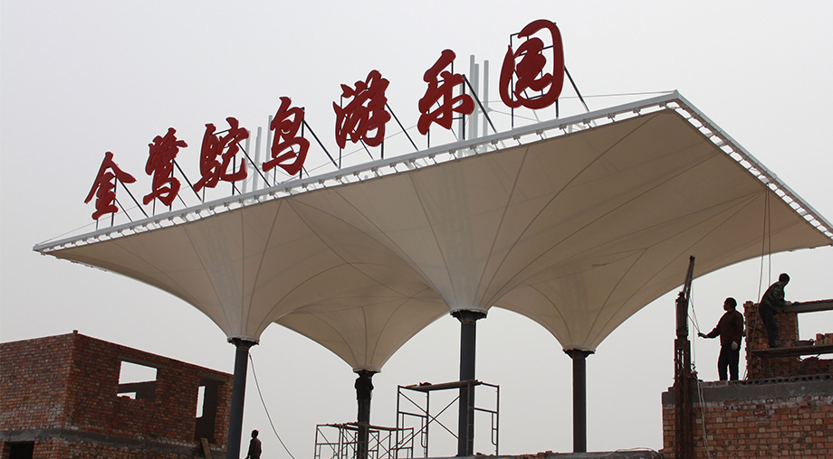 河南大唐景觀(guān)膜有限責(zé)任公司是一家集索、膜結(jié)構(gòu)、張拉膜等設(shè)計(jì)開(kāi)發(fā)、加工制造、施工安裝、維護(hù)于一體的技術(shù)工程公司。公司開(kāi)發(fā)的膜結(jié)構(gòu)建筑風(fēng)格獨(dú)特,藝術(shù)性強(qiáng),具有濃厚的現(xiàn)代氣息,廣泛應(yīng)用于景觀(guān)膜體育場(chǎng)館、高速公路收費(fèi)站、加油站、大型停車(chē)場(chǎng)、博覽會(huì)展廳、公共場(chǎng)所、休閑場(chǎng)所、景區(qū)裝飾等。公司將秉承“技術(shù)領(lǐng)先、質(zhì)量求精、服務(wù)至上”的宗旨、全力使客戶(hù)享受到本公司更多的獨(dú)特設(shè)計(jì)、結(jié)構(gòu)新穎、造型優(yōu)雅的膜結(jié)構(gòu)精品工程。 READ MORE →